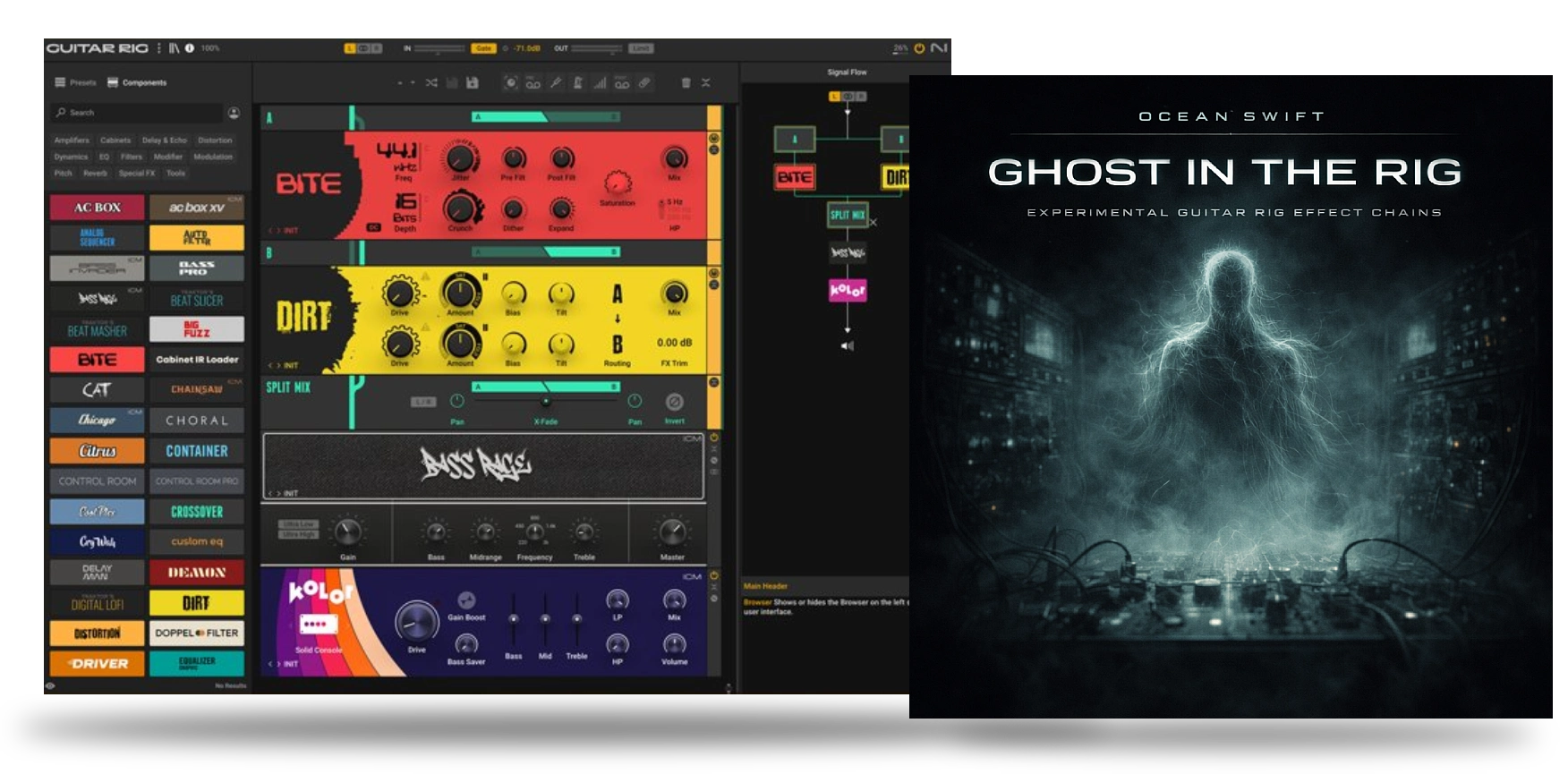 Ghost In The Rig is for producers, composers, and designers who want Guitar Rig to behave less like a pedalboard… and more like a haunted modular lab.