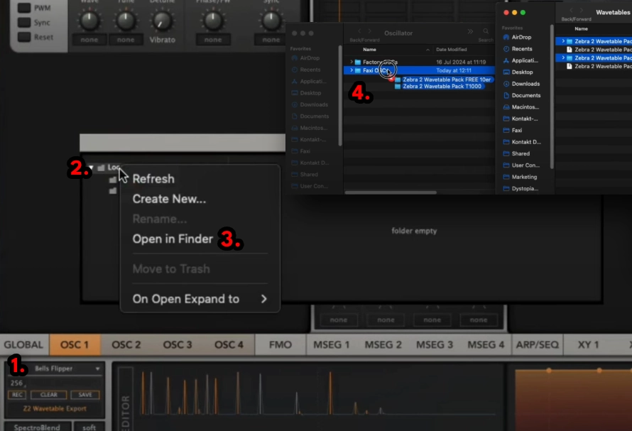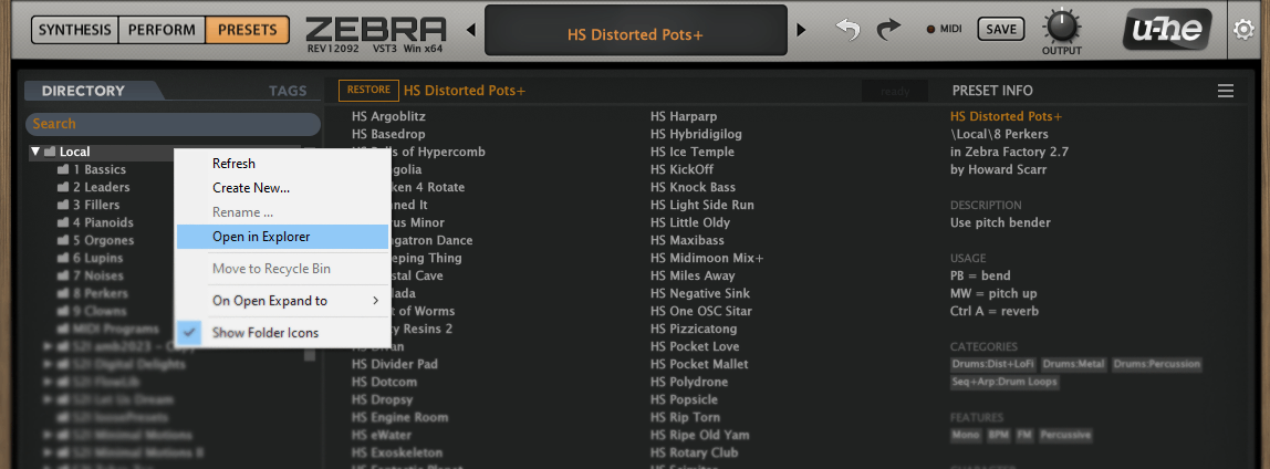 1) Open Zebra2 to go the presets tab and right-click “LOCAL” folder at the top, now click “Open In Explorer”, a window will open