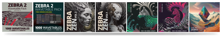 Ocean Zebra collection also features two distinct Zebra 2 Wavetable Packs offering 2000 evolving morphing wavetables in U-He Zebra 2 and Zebra HZ .h2p format.
